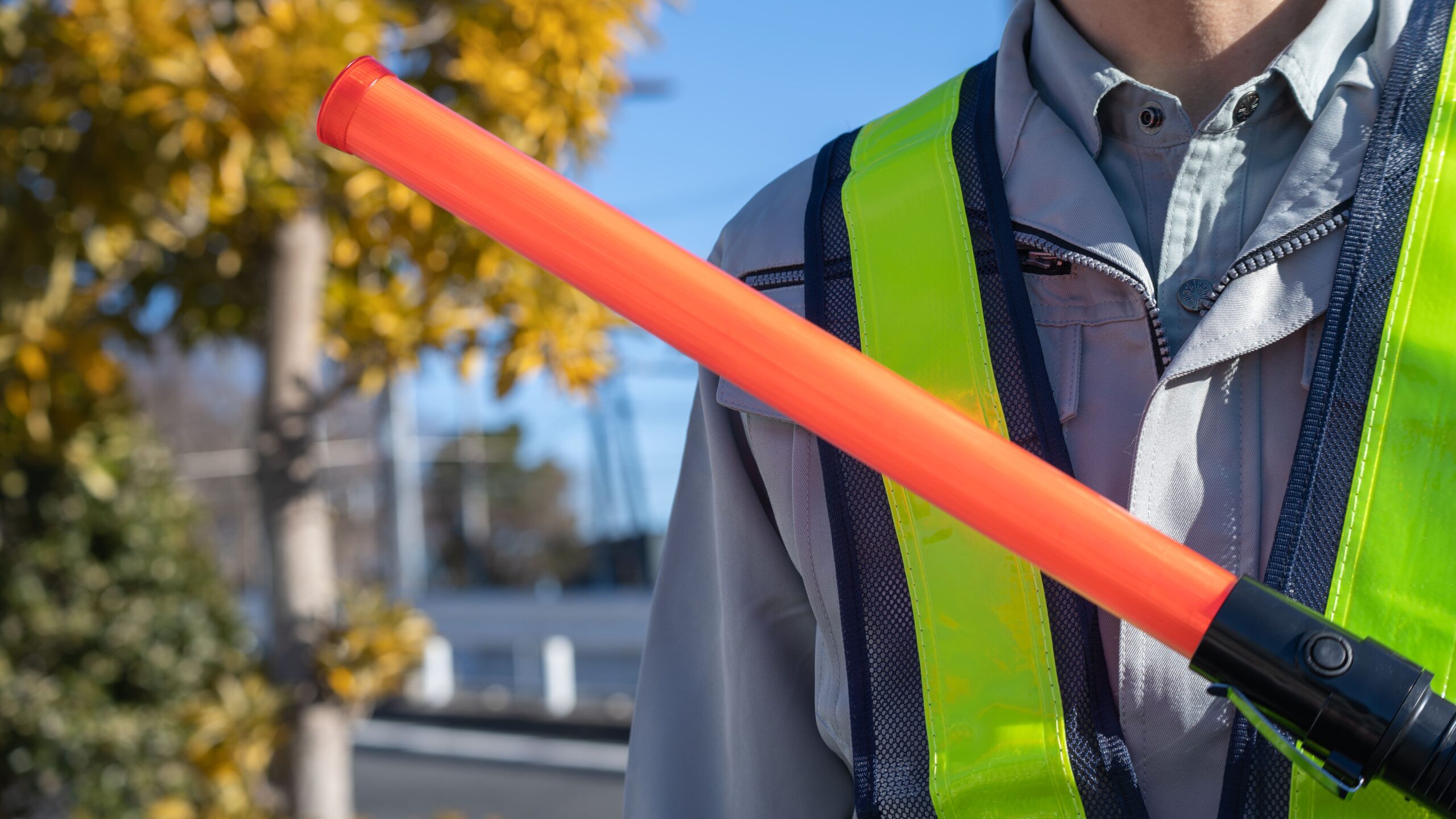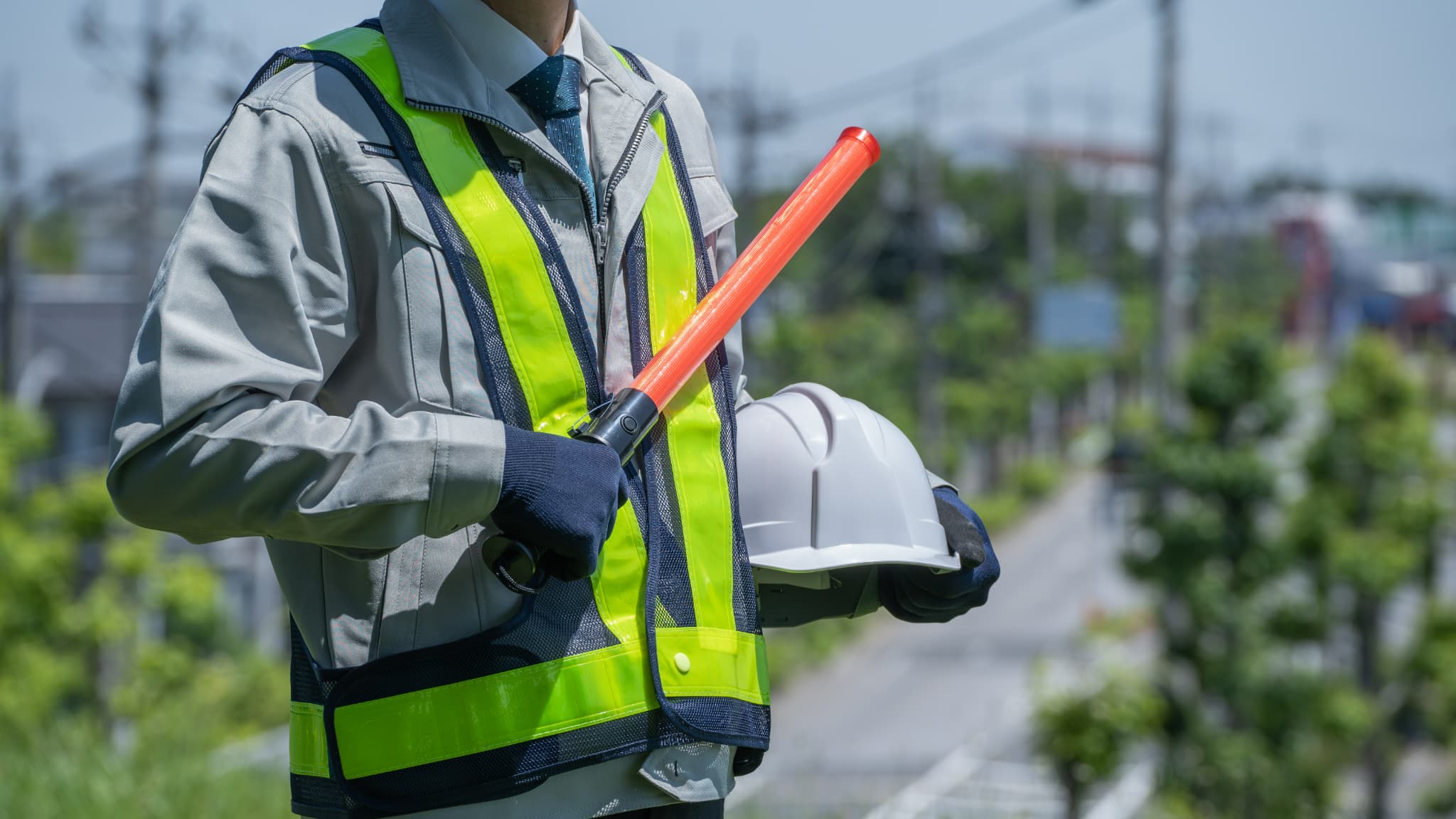 「交通誘導警備業務2級」の資格をもつ熟練の交通誘導員たちが、現場作業員および通行人のみなさまに安心をお届けします。